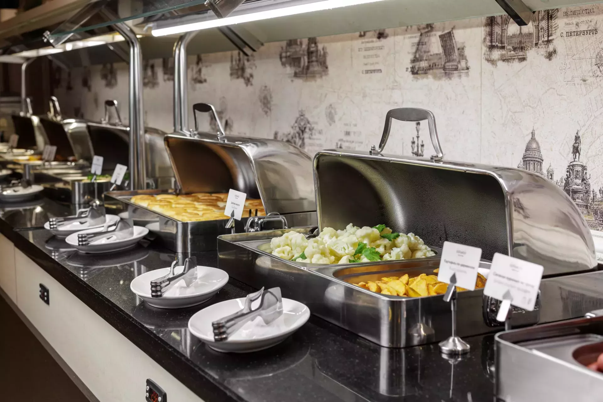 Завтрак проходит в формате «шведский стол» с 07:00 до 10:00 пн.- пт. и с 07.00 до 11.00 сб.-вс. Стоимость составляет 1300 рублей на человека. Завтрак проходит в ресторане "Мэргэн" на втором этаже отеля.